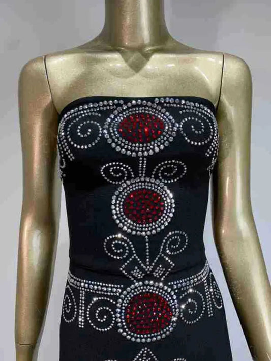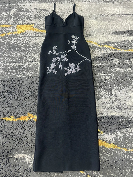 Sexy Diamonds Crystal Black Maxi Long Bodycon Elegant Dress