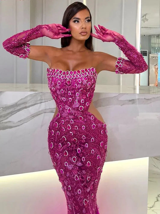 Gorgeous Mermaid Crystal Beaded Hollow Sexy Bandaged Dress